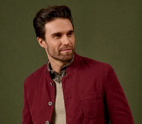 Schlanke Joppe mit Kragen aus rot-grauem Loden. Die Joppe hat drei Leistentaschen und einen glatten Rücken. Der Oberstoff ist 2-farbig strukturiert in eine sportiven, körnigen Bindung. Büffelhornknöpfe.       ... (mehr lesen)